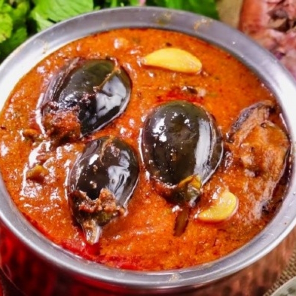 Delicate eggplant cooked with a mix of spices, onions, and tomatoes, delivering a delightful and hearty vegetarian option.