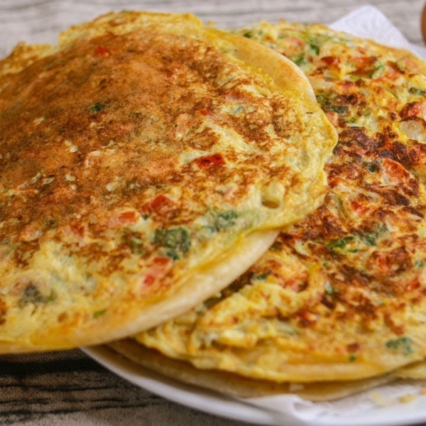 A scrumptious flatbread stuffed with a spiced egg mixture, perfect for a quick and satisfying meal.