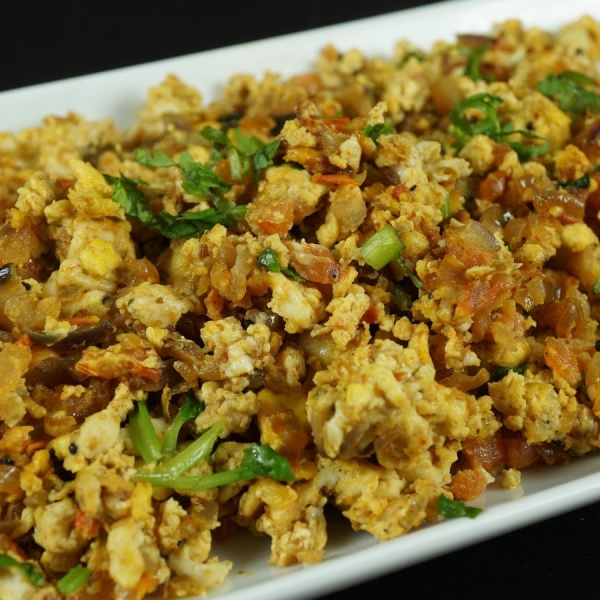 A delicious South Indian scrambled egg dish, cooked with spices and aromatic flavors.